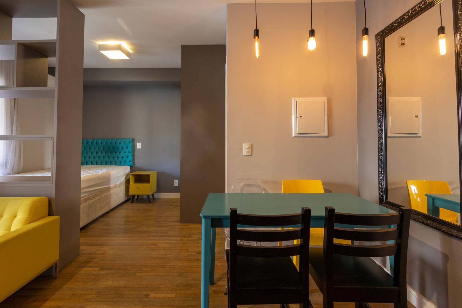 - Um Dormitório: Ideal para solteiros ou casais, o quarto é espaçoso e acolhedor, proporcionando conforto e privacidade.